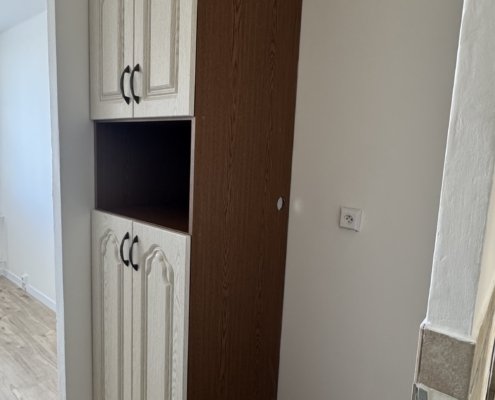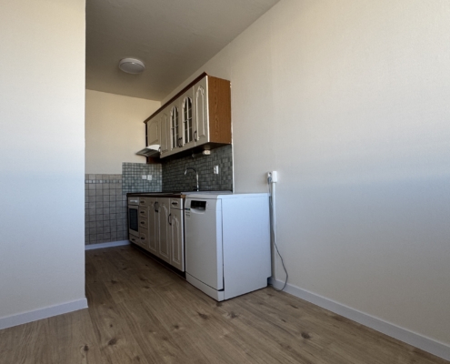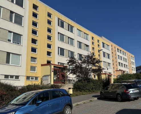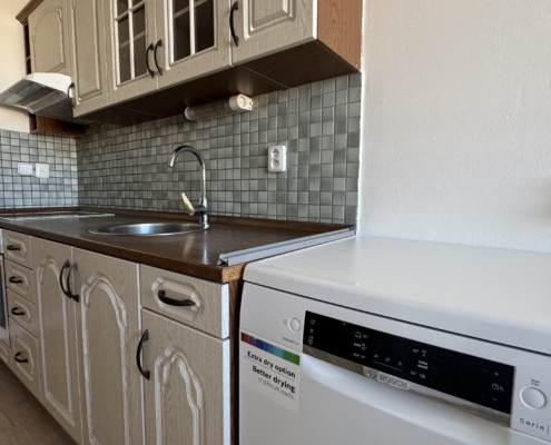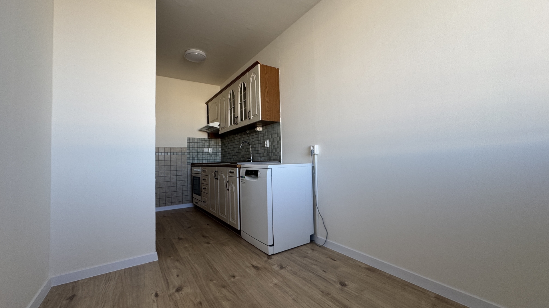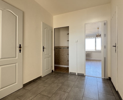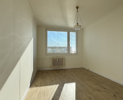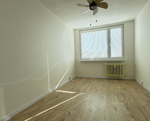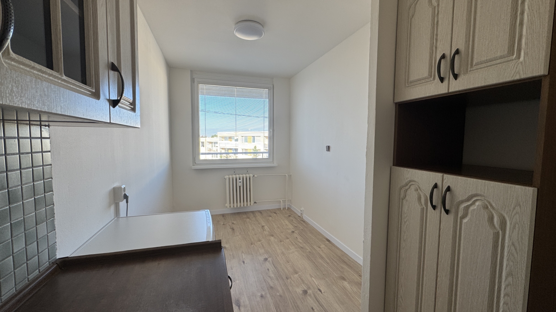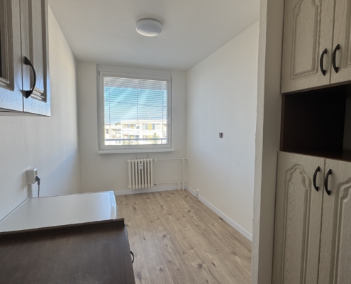 V zastoupení klienta nabízíme k pronájmu velmi pěkný byt 3+1 o výměře 70 m2 v 5. nadzemním podlaží bytového domu ve klidné pražské části Kobylisy. Byt disponuje obývacím pokojem, kuchyní, dvěma ložnicemi, koupelnou, samostatným WC, komorou a předsíní. Byt se pronajímá nevybavený (k dispozici je kromě kuchyňské linky se sporákem, myčka). Jednotka nyní prošla částečnou rekonstrukcí – nová výmalba, podlahy, dveře. Předsíň je vybavená starší vestavěnou skříní.