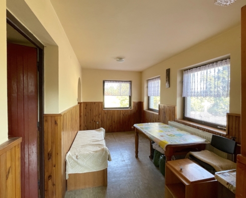 Dům nabízí následující dispozici: z předsíně je přístupná kuchyň vč. jídelny, ze které se dále vchází do koupelny. Dále je zde umístěna samostatná toaleta a také průchod do chodby, ze které jsou přístupné dva průchozí pokoje.