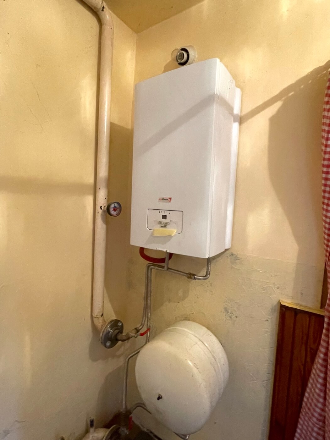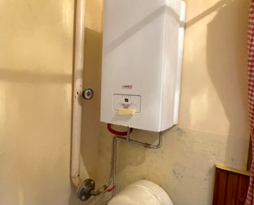 Vytápění ústřední – elektrokotel. Ohřev teplé vody pomocí el. bojleru.