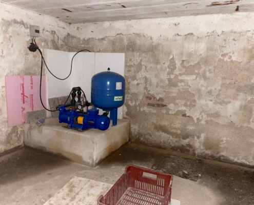 Na pozemek jsou přivedeny jak obecní vodovod, tak i kanalizace. Nejsou zavedeny do domu, nicméně se lze v rámci rekonstrukce domu na tyto sítě připojit. Aktuálně je do domu zavedena voda z vlastní studny, odpad sveden do jímky před domem. Dále zavedena el. energie.